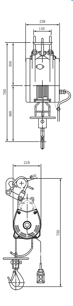 When the hook rises to a certain lifting height or when the wire ropeis reversed, the limit switch will be triggered to protect the machineand stop the machine from working.